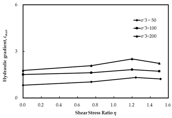 Effect of deviatoric stress on hydraulic gradient that initiates internal erosion [69].