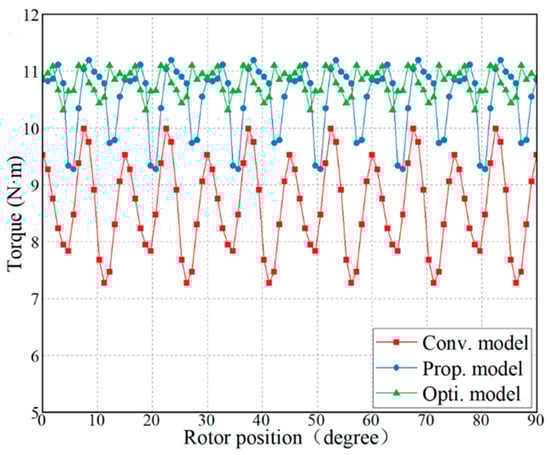Comparison of torque characteristics of the conventional and proposed models.