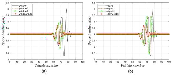 Comparison of the different space headways of different and μ: (a) different ; (b) different μ.