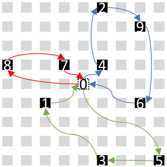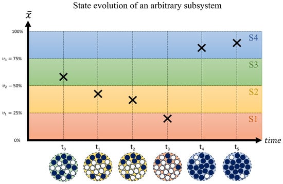 At any given state (), a subsystem has the theoretical opportunity to transition to any other state (), as can be seen in the state evolution example from Figure 4 or the general state transition diagram from Figure 5.