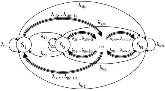 In Figure 5, are the states of the MC, where N is the number of states; is the the execution frequency of the transition from state to state . This general diagram is actually an abstract interface with properties to be inherited by concrete diagrams. Each identified subsystem establishes its own concrete case, with two examples being presented in Section 4.