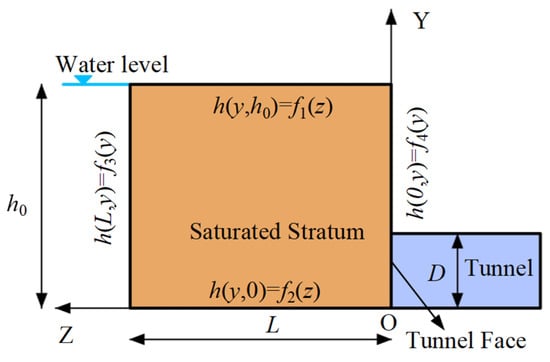 Assuming sufficient groundwater recharge, a stable groundwater level, and no seepage influence at a distance L in front of the tunnel, the boundary conditions can be expressed as
