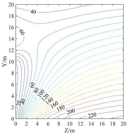 Without considering the variation in water pressure in the x-direction and ignoring the impact of anisotropy in the permeability coefficient, the seepage field near the shield tunnel face satisfies the two-dimensional Laplace governing equation: