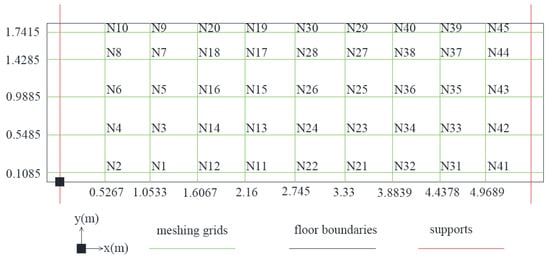 Node numbers and coordinates initialized on the laboratory-based floor structure shown in Figure 2.