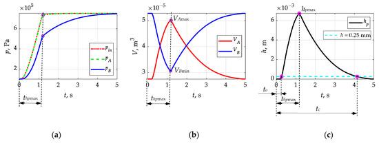 3.1. Determination of Characteristic Operating Times and Maximum Displacement of the Valve Piston