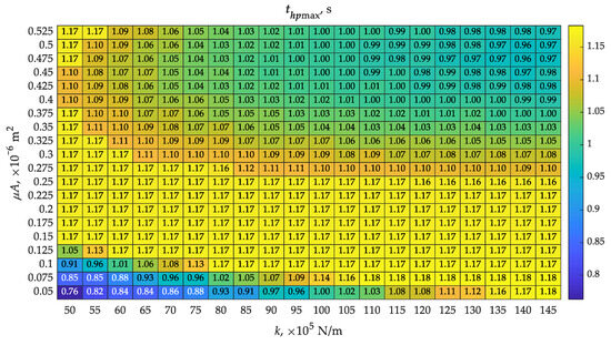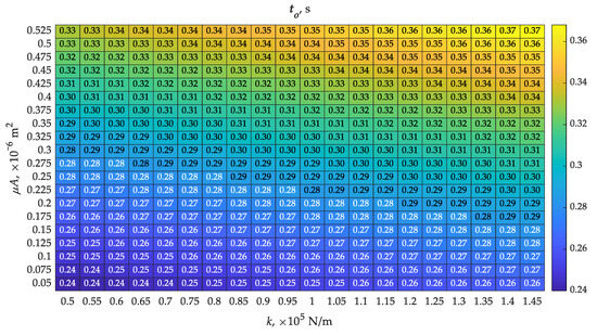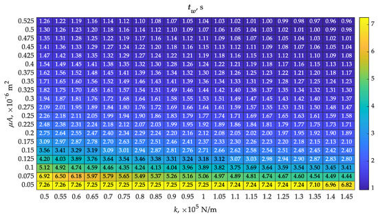 - The highest stiffness (1.45 × 105 N/m) resulted in a slight increase in opening time to 0.26 (0.37) s and a marked decrease in closing time to 1.32 (7.08) s, depending on the throughput of the piston bore;