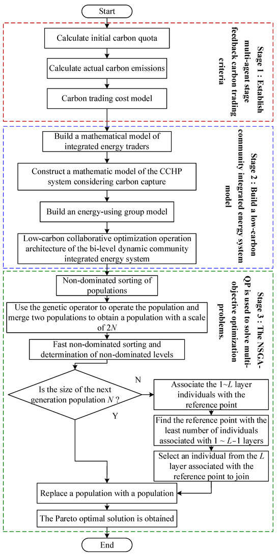 Therefore, this paper uses a non-dominated sorting genetic algorithm embedded in quadratic programming (NSGA-QP) with continuous decision-making ability to solve the optimal scheduling problem of the low-carbon CIES. The NSGA-QP is used to solve the multi-objective optimization problem established by the above two-layer dynamic CIES low-carbon collaborative optimization method. The specific steps are as follows: