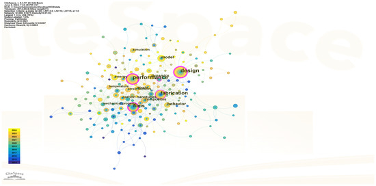 In order to further study the hotspots of electromechanical assembly in the last decade, keyword analysis is carried out through CiteSpace. The literature from 2010 to 2024 is selected from it. The output shows that there are a total of 268 keywords in the literature about assembly M&E. From the figure, we can also see that the research hotspots are concentrated in the four significant nodes of performance, design, fabrication, and films, which are closely followed by behavior, model, composites, and other keywords. These keywords all indicate the academic community for the future trend of assembly electromechanical exploration, and through the design, composites and other keywords are reflected in the future of assembly electromechanical in the whole life cycle of the various stages of the overall synergies as well as intelligent management (see Figure 5).