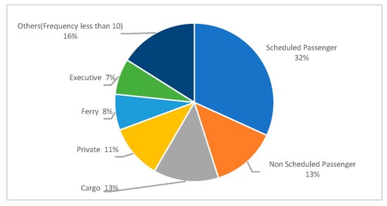 In addition, the operating type distribution of 437 accidents is shown in Figure 3, and it should be noted that the aircraft are capable of carrying at least 12 passengers.