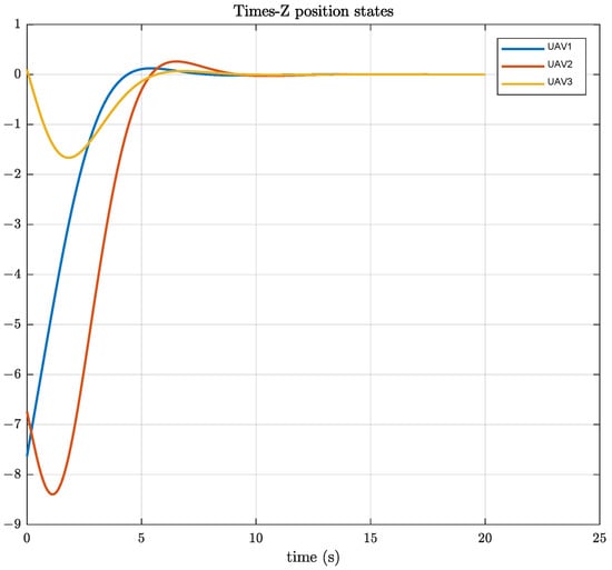 Figure 10 displays the stabilization of position consistency error in the Z-direction for the UAV system under the optimal fault-tolerant consistency algorithm. The consistency algorithm presented in Reference [29] is designed only for the UAV and UGV systems in the XY plane, thus not considering the velocity state in the Z-direction.