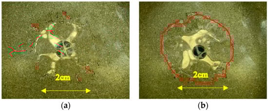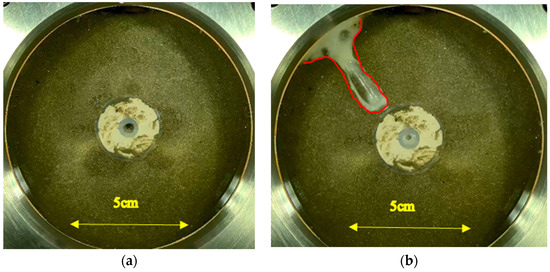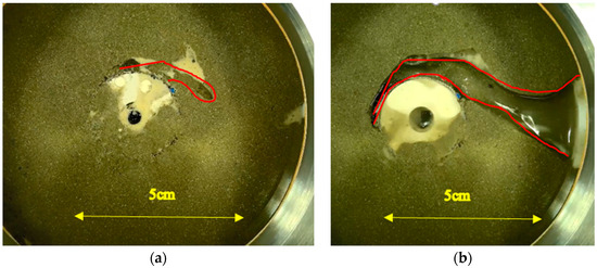 Gas-liquid 60 mL/min mixed replacement photo. (a) Initial permeability state of replacement (b) End deficit state of replacement.