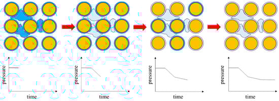 The above experimental results show that the driving force of the sand emergence process in hydrate mining is mainly the water flow in the pore space, and the factors affecting the sand emergence process include the magnitude of the pressure drop, the rate of the pressure drop, and the saturation of the hydrate. Early studies focused on the sand behaviour of sandy reservoirs, and the sand process in sandy reservoirs was mostly controllable in the experiments. With the success of the hydrate test mining project in the Shenhu Sea of the South China Sea, more attention has been paid to the sand release behaviour of muddy reservoirs. Existing research results show that mud reservoirs exhibit a higher risk of sand emergence due to finer sediment grains. At the same time, due to the elevated mud content, the sanding process in mud reservoirs is prone to forming special structures such as “mud cake” and “mud skin” in the near-well area, which can lead to clogging problems and affect gas production.