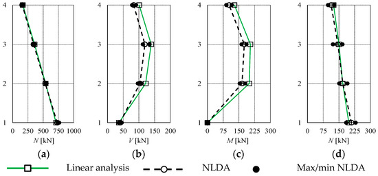 Due to its lateral deformability, the insertion of the VED–brace subassembly in the frame does not determine a significant increase in the lateral stiffness of the structure. Owing to this, beams and columns are sized according to capacity design rules established in Eurocode 8 [1] for steel moment-resisting framed (MRF) structures. Thus, members are verified according to Eurocode 3 [55] to resist internal forces determined by means of linear analyses. Once the MRF is fully sized, the VED–brace subassembly is included in the model and sized considering the effects of the higher modes of vibration. Finally, response spectrum analysis is performed to verify that limits on floor displacements are respected. The proposed design procedure is shown in the flowchart diagram reported in Figure 7.