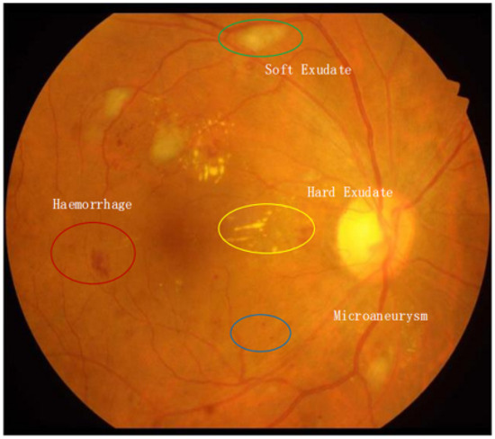 3]. The condition is characterized by symptoms such as microaneurysms (MAs), hemorrhages (HEs), soft exudates (SEs), and hard exudates (EXs) [