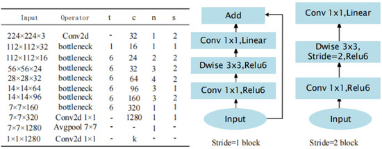 Figure 3, where c, n, s, and Dwise represent channel number, module number, stride, and depth-wise convolution, respectively, while t denotes the scaling factor of the channel number within the inverted residual module.