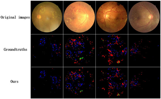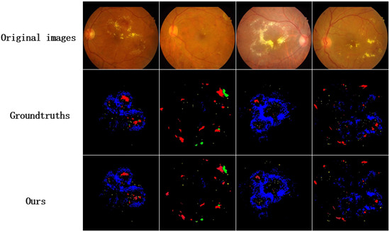 The cross-entropy loss is taken to measure the error of segmentation for four DR lesions at the pixel level, and the formula is shown in Equation (