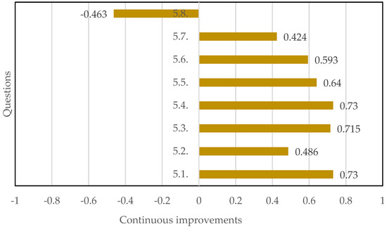 To evaluate the reliability of the questionnaire, Cronbach’s alpha method was chosen, suitable for measuring internal consistency with the Likert scale and interpreted according to the results of the Kaiser–Meyer–Olkin (KMO) test [17], being from 1 to 0.90 very good; 0.80 to 0.90 good; 0.70 to 0.80 average; 0.60 to 0.70 reasonable; 0.50 to 0.60 bad; and less than 0.50 unacceptable [18]. The test results are mirrored in Table 3.