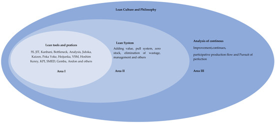 We can also highlight studies conducted on the subject related to the assessment of Lean maturity levels in industries performed by [24]. This study was applied to the manufacturing sector of Pakistan. The applied model provides the ease of integrating two main paradigms of Lean manufacturing and Industry 4.0 and allows companies to make their assessment. The study on the Lean circular maturity model (LCMM) for companies’ self-assessment in terms of process, product, and life cycle thinking proposed by [25] focuses on the self-assessment of companies in terms of Lean thinking applied in the production process and in the product life cycle. The study on the maturity model for assessing Digital Green Lean leadership and culture implementation in manufacturing companies developed by [26] contributes to providing tools that help compare and develop action plans in the context of Industry 4.0, circular economy, culture, and Lean leadership as part of the new Digital Green Lean [27,28].