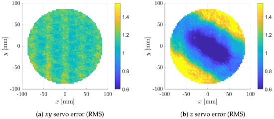 RMS servo error variation within planar travel range.