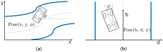 - Compute the angle between the and the , then rotate by :where is the reference line in the Cartesian frame. If transforming trajectory from the Cartesian frame to the Frenet frame, then the sign of is negative.