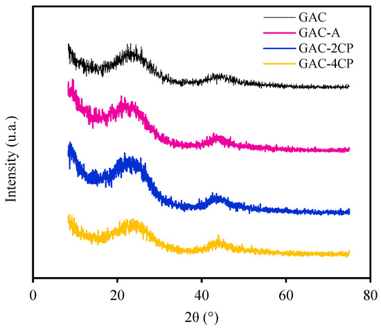 GAC XRD patterns, where -A is after adsorption, -2CP is after second combined process, and -4CP is after fourth combined process.