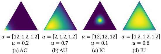 According to belief theory [29], subjective logic provides a belief mass b k for each singleton k = 1 , , K , along with an overall uncertainty mass u. These K + 1 mass values are non-negative and sum to 1, i.e.,