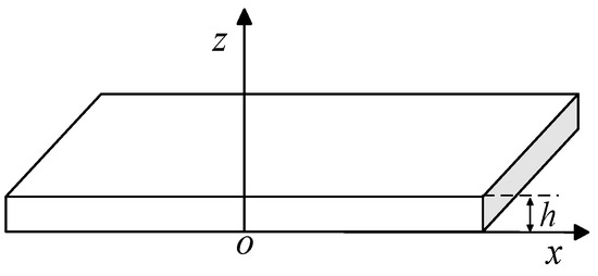 For the functionally graded material plate shown in Figure 2, the propagation direction of the Lamb plate is along the positive x-axis, and the z-axis is along the thickness direction of the plate, with a plate thickness of h. The material parameters vary continuously in the thickness direction, Where , the mass density and elastic coefficients , , are functions of the coordinate z.