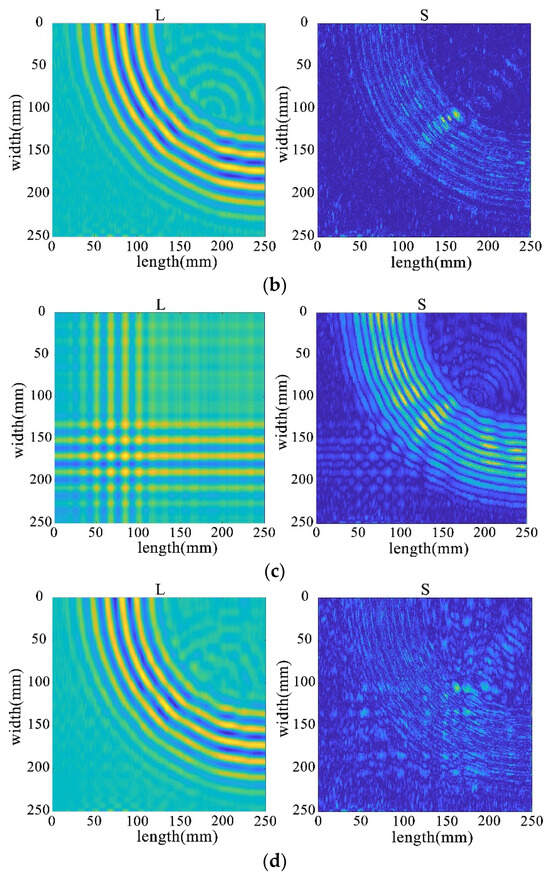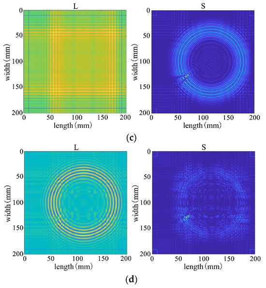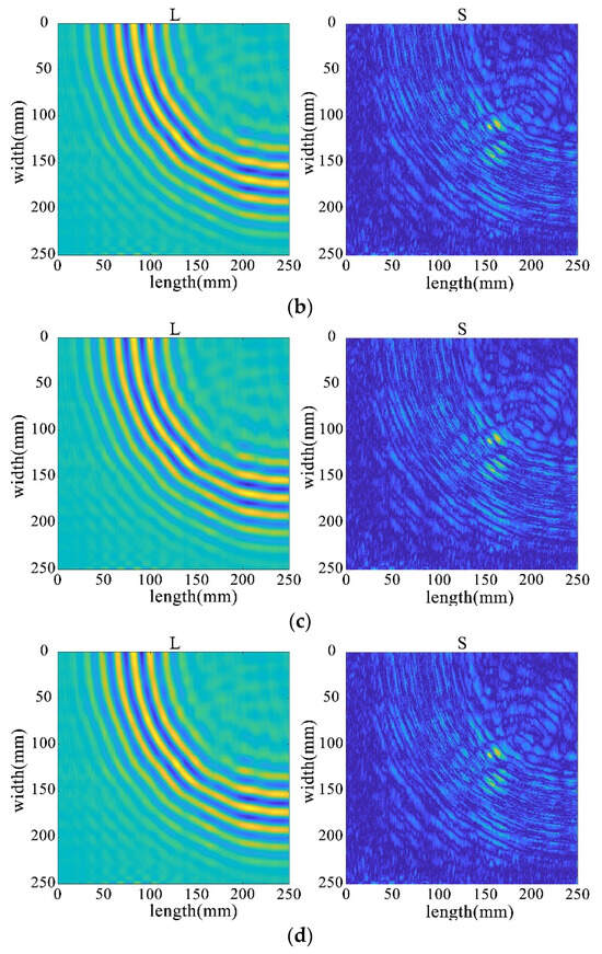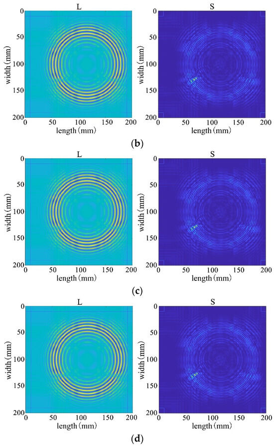 Furthermore, the algorithm’s adaptability to different types, sizes, and positions of defects has been thoroughly examined. It excels in detecting both single and multiple defects, showcasing its versatility and robustness in challenging situations. Compared to existing methods, the NCA-RPCA algorithm exhibits higher efficiency, faster convergence, and improved accuracy in detecting anomalies within wavefield images.