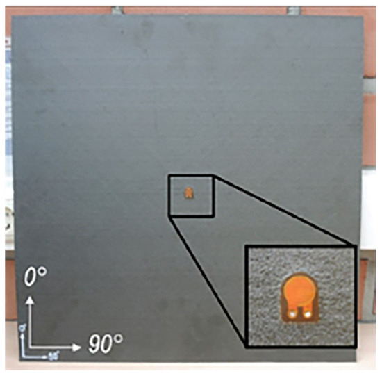 For further validation of the algorithm, a publicly available dataset from the University of Göttingen, Germany, is used in this paper [46]. These data are for a CFRP plate with dimensions of 500 × 500 mm and a thickness of 2 mm with the material properties shown in Table 5, the structure of the plate is shown in Figure 30. A piezoelectric transducer was located in the center of the structural plate for acoustic field measurements. An aluminum disc was mounted on the surface of the CFRP plate using adhesive tape to simulate damage. The excitation signal was a 5-cycle Hanning window-modulated sine wave. The experiment was carried out using a PSV-400-3D from Polytec GmbH (Waldbronn, Germany) for full wavefield measurements. Due to symmetry, only the lower left quarter of the plate was swept. Therefore, the sensor was located in the lower-left corner of the measured wavefield. The experiment is shown in Figure 31.