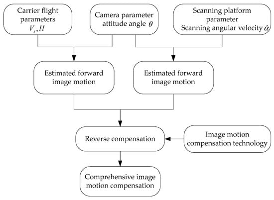 For the current mainstream long focal length, common aperture, and multi-band aerial cameras, the optimal approach is to implement optical image-motion compensation, which adopts the multi-dimensional movement of an optical element to achieve the comprehensive image-motion compensation of multi-band cameras. In addition, during the selection process of the optical element for the image-motion compensation, two points should be emphasized: one is the high efficiency of image-motion compensation, and the other is that the motion of the optical element has the least influence on the image quality. Also worth comprehensive consideration is that the secondary mirror in the catadioptric optical system is used as the optical element for image-motion compensation, and the purpose of comprehensive image-motion compensation is achieved through its multi-dimensional movement. The principle and flow chart of image-motion compensation are shown in Figure 1 and Figure 2 respectively.