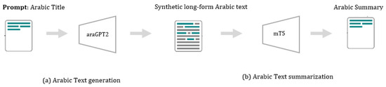 Data augmentation pipeline using (a) Arabic text generation and (b) Arabic text summarization.