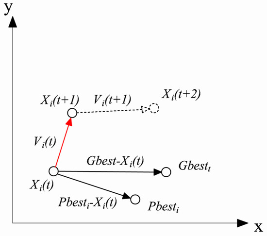 In the formula, and are the velocity and position of the particle at iteration ; and are two stochastic parameters uniformly distributed in [0, 1]; and are the learning weights for the individual particle extremes and the particle population extremes; and is the inertia weight.