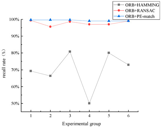 To validate the advantage of the algorithm proposed in this paper (ORB+PEmatch), the matching performance is compared with the traditional ORB algorithm, ORB+HAMMING algorithm [31], and ORB+RANSAC algorithm [32] in the actual environment of a photovoltaic power plant. The traditional ORB algorithm provides the same set of coarse matching point pairs as for the other three algorithms. The ORB+HAMMING algorithm uses twice the minimum HAMMING distance as the threshold to eliminate mismatches. ORB+RANSAC employs the random sample consensus algorithm to compute the fundamental matrix, with an inlier distance threshold set to three. After obtaining the fundamental matrix, mismatches are eliminated using the epipolar constraint with a common threshold of three. The inlier distance threshold is the pixel distance from the matching points to the epipolar line. Due to the noise often present in images, setting the inlier distance threshold too small can filter out correct matches, while setting it too large may result in missing incorrect matches. Based on multiple experiments and considering commonly used values from past research, the experiment adopts an approximated optimal value of three as the inlier distance threshold.