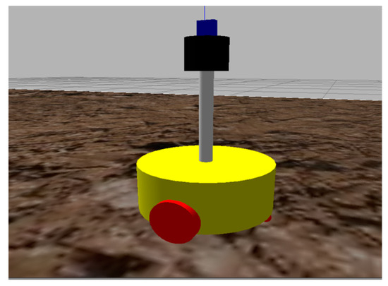 Gazebo uses simple text formats (such as URDF, SDF, etc.) to describe and create simulation models, which include attributes such as geometric shapes, mass, inertia, kinematics, and dynamics. As shown in Figure 20, a robot model is built on Gazebo 9, with the blue block on top representing the camera appearance model. The Kinect camera simulation code provided by Gazebo is loaded onto the camera model, thereby realizing the robot’s perception part. The robot is driven using a two-wheel drive, and the drive wheels are controlled using the differential drive model provided by Gazebo.