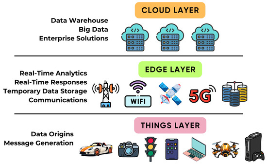 The process is mainly conducted by designing the IoT layer sitting at the bottom of the architecture, while the resource providers are at the network edge. Edge computing optimizes IoT data processing [79]. In this architecture, IoT devices collect data from their environment, which is then processed locally on edge devices instead of being sent directly to distant cloud servers. This local processing capability allows for real-time data analysis and decision-making, which is critical in applications requiring immediate action such as autonomous driving, real-time health monitoring, and smart city infrastructure [80].