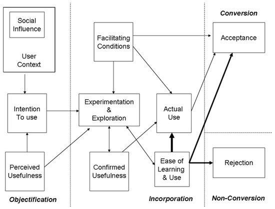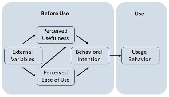 - Davis, F.D.; Bagozzi, R.P.; Warshaw, P.R. User Acceptance of Computer Technology: A Comparison of Two Theoretical Models. Manag. Sci. 1989, 35, 982–1003. [Google Scholar] [CrossRef]