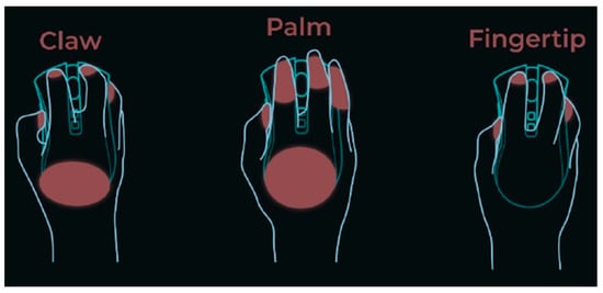 Participants’ grip types. Figure obtained from https://www.wepc.com/reviews/logitech-wireless-keyboard-and-mouse-buyers-guide/ (accessed on 9 April 2024).