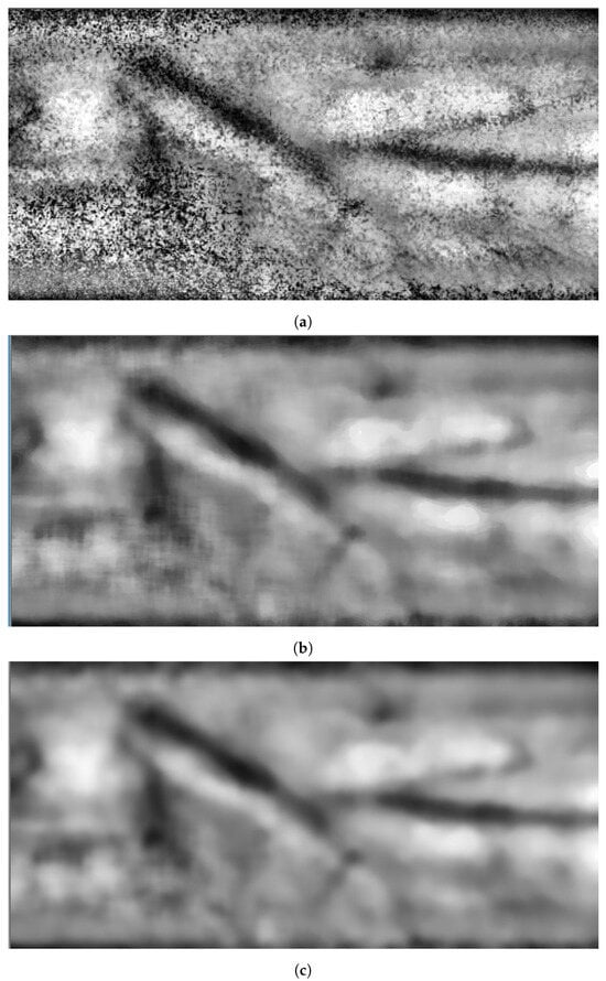 Stage 2, image enhancement: (a) CLAHE filter; (b) median filter; (c) Gaussianow-pass filter.