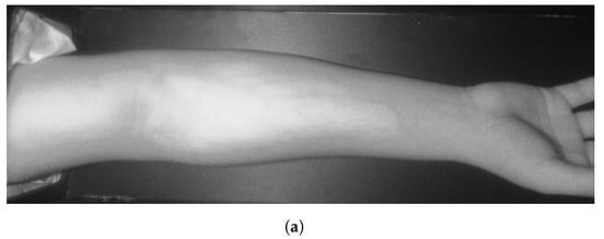 - Bandara, A.; Kulathilake, K.; Giragama, P. Super-efficient spatially adaptive contrast enhancement algorithm for superficial vein imaging. In Proceedings of the 2017 IEEE International Conference on Industrial and Information Systems (ICIIS), Peradeniya, Sri Lanka, 15–16 December 2017; pp. 1–6. [Google Scholar]