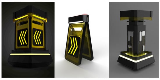 According to the above research results, we carried out a preliminary program design, as shown in Figure 1. The overall appearance of the product chooses hard lines, abandoning cumbersome details, paying more attention to the integration of the environment and the conveyance of warning messages, and the modeling is simple and intuitive.