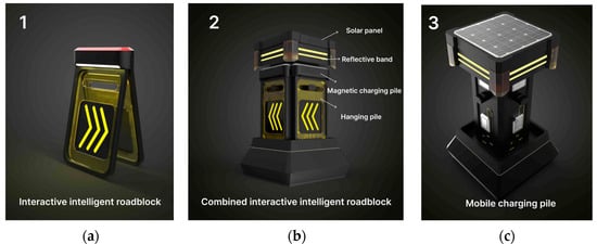 Figure 2. Preliminary project material rendering. It shows that the R-barricade is composed of a mobile charging pile and an interactive roadblock as a combined interactive roadblock (the picture is drawn by the author).