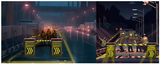 • Brightness: Brightness can affect human visibility and distance perception of objects [32]. In barricade design, the intervention of interactive components can improve the ability to prevent physical danger to workers and address the mobility of barricades, as well as improve visibility at night or in low-light conditions;