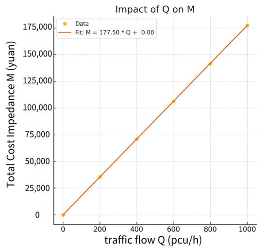 Influence of the traffic flow Q on travel cost M.