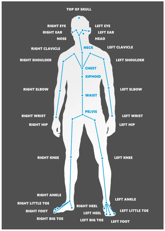 - Lightbuzz. Body Joints|LightBuzz. Available online: https://lightbuzz.com/docs/general-information/body-joints/ (accessed on 1 January 2024).