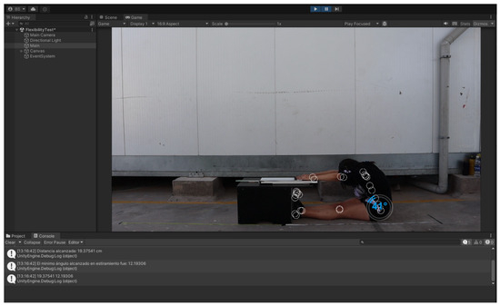 The high-level description of the solution described in each software module is a scene in the Unity tool, where each scene consists of the code necessary to evaluate an individual test. There are four scenes: the first is called “HorizontalJump,” which is used to measure horizontal jump; the second is called “FlexibilityTest,” which measures the sitting flexibility test; the third is called “SitUpCounter” and counts the number of abdominals performed in a period; and the last one is called “BicepCurlCounter” and counts the number of biceps curls with a dumbbell, which is performed in a certain period.