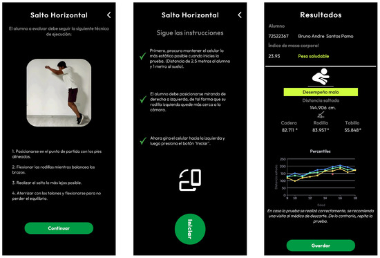 Subsequently, after having collected and analyzed the data and obtained the percentiles of the student’s physical fitness level, these can be used to determine the results of the student’s performance in the tests and indicate whether they are above average, average, or below average in physical fitness based on your age and gender. In this case, it is only necessary that the system can be used in a mobile environment, where the teacher records a student while taking the test; the system analyzes the exercise performed and indicates the student’s level of physical fitness. In this context, the teacher must enter the student’s anthropometric data and then take the video of the test performed.