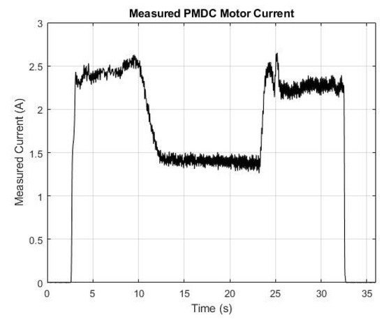The experimental measurements of the motor current during the towing tank testing.