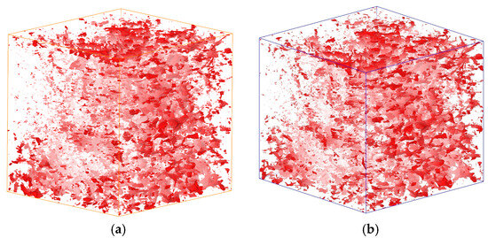 (a) Real 3D pore structure (800 × 845 × 840); (b) synthetic 3D pore structure (1024 × 1024 × 840).