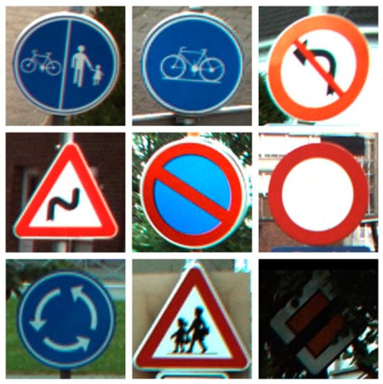 The BelgiumTS dataset includes 62 categories, where the training set contains 4575 images, the test set contains 2520 images, and some images in the BelgiumTS dataset are shown in Figure 6.