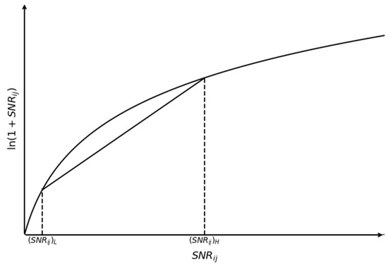 Linearization of ln function at qth interval of SNRij.